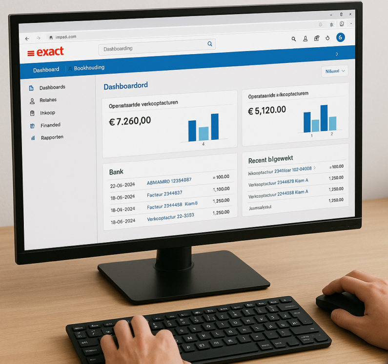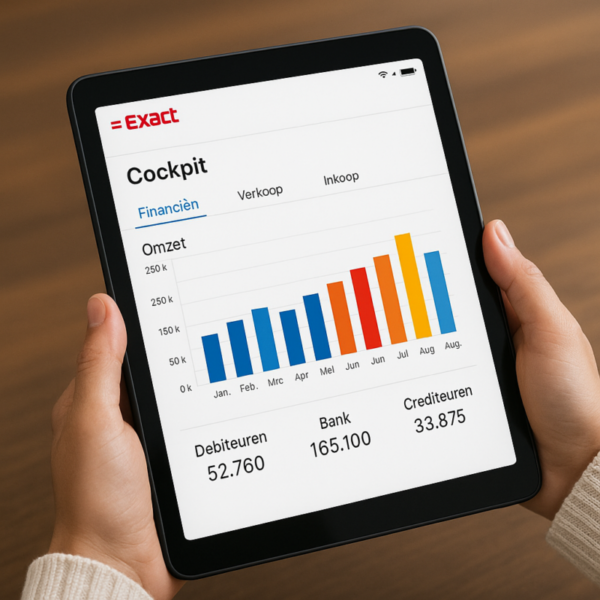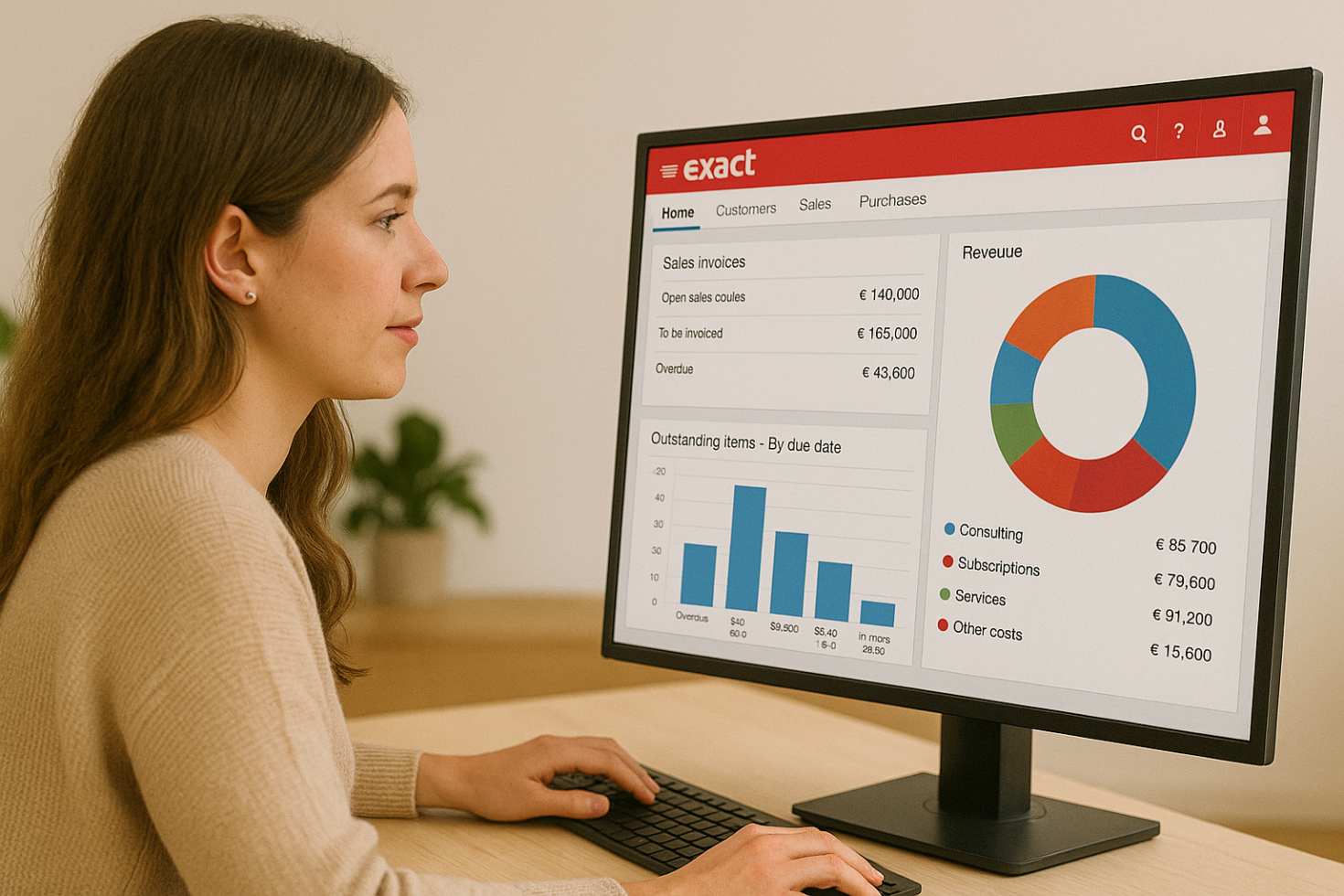 Met het Exact online dashboard heb je eenvoudig inzicht in je bedrijf. De belangrijkste informatie wordt op één scherm gepresenteerd. Je kunt inzoomen op informatie in detail. Dit geldt bijvoorbeeld voor winst, banksaldi, kassaldi, omzet, klanten, leveranciers en openstaande verkoop- en inkoopfacturen.